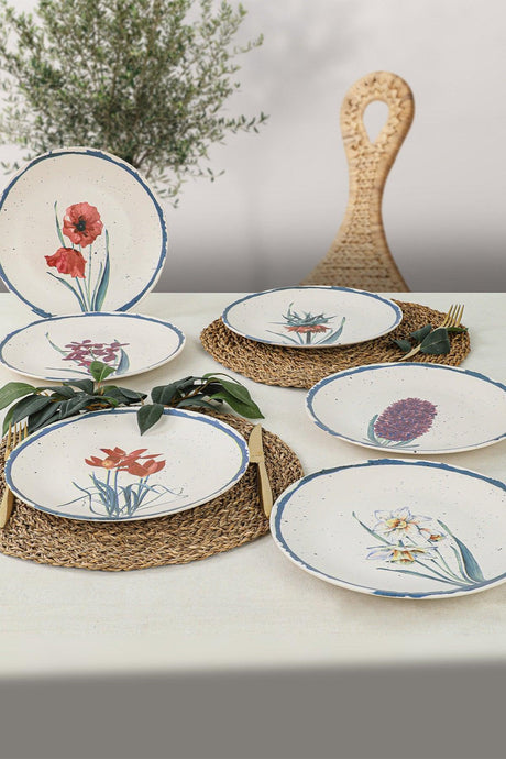 Set 6 cesti + 6 farfurii, Portelan, Multicolor