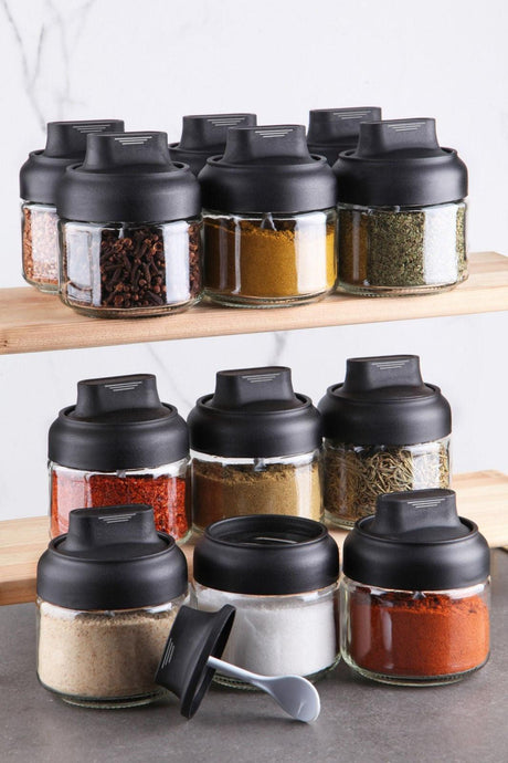 Set recipiente pentru condimente Kosova, Sticla, 300 ml, 12 bucati, Lingura, Transparent