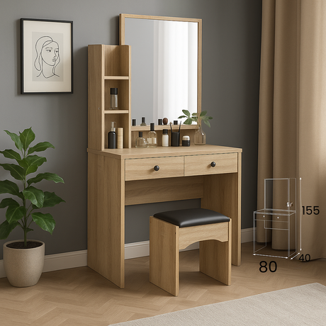 Masa de machiaj Cenzo, Natural, 80x40x155 cm