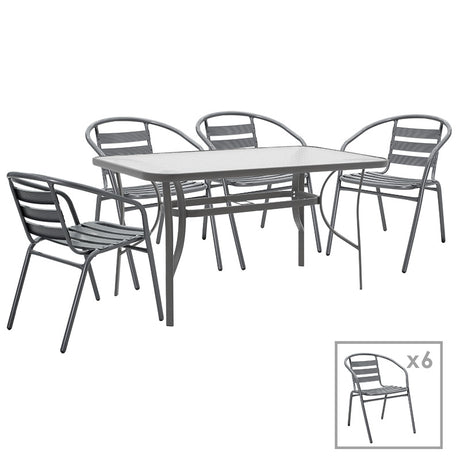 Masa de dining Raven-Kliton B set de 7 din aluminiu antracit 150x80x74cm