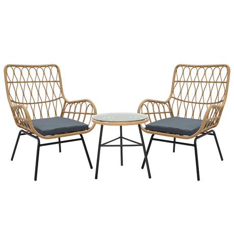 Masa de dining Naoki-Kliton B set de 7 antracit aluminiu si pe rattan Natural 150x80x74cm