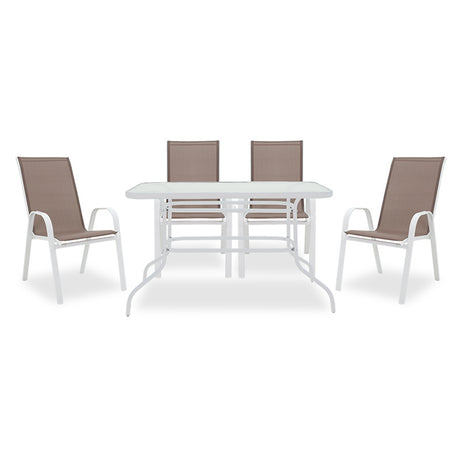 Masa de dining Nares-Convince un set de 5 alb de aluminiu si placaj Natural 140x80x72cm