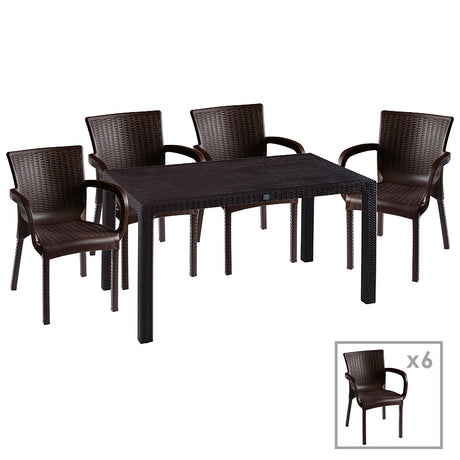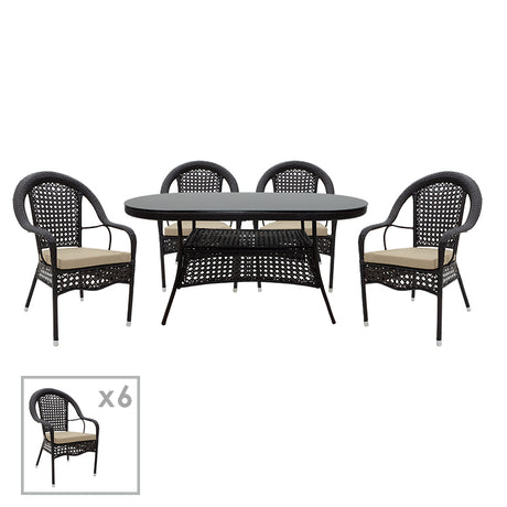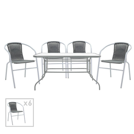 Masa de dining Naoki-Kliton II set de 7 din aluminiu antracit si pe rattan neagra 150x80x74cm