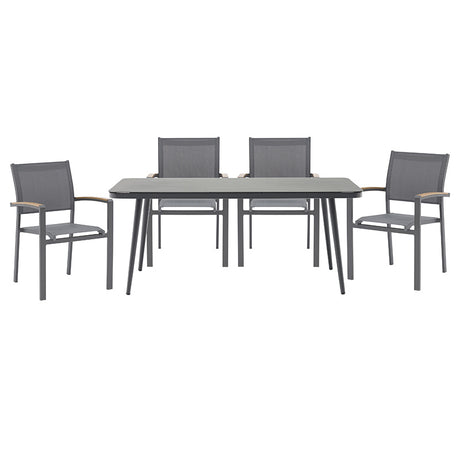 Masa de dining Vitality-Kliton B set de 5 aluminiu antracit si lemn Gri 150x80x74cm