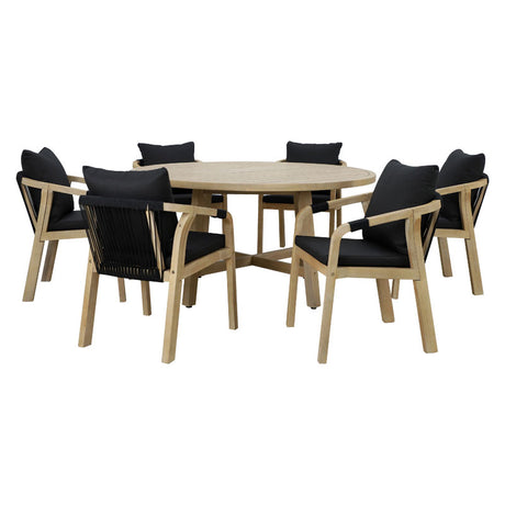 Masa de dining Nares-Glisten set de 7 din aluminiu antracit si placaj, Natural 180x90x72cm