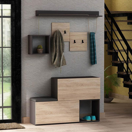Cuier cu pantofar Metin, Stejar, 110 x 92 x 35 cm