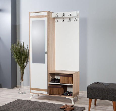 Cuier cu pantofar Mykonos, Alb - Nuc, 179 x 183 x 36 cm