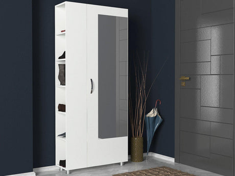 Cuier cu pantofar Rulidash cu Oglinda, Alb, 148 x 180 x 38 cm