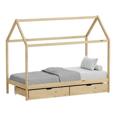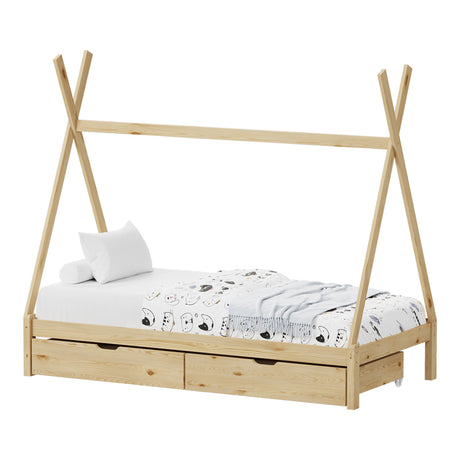 Pat pentru copii Mellin, 2 sertare, Natural, 90x190 cm