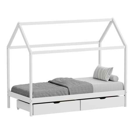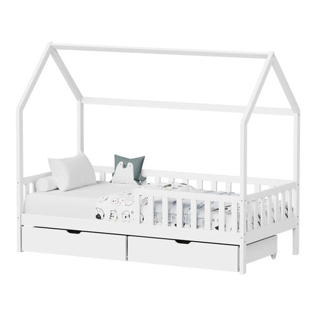 Pat pentru copii Mellin, 2 sertare, Alb, 90x190 cm