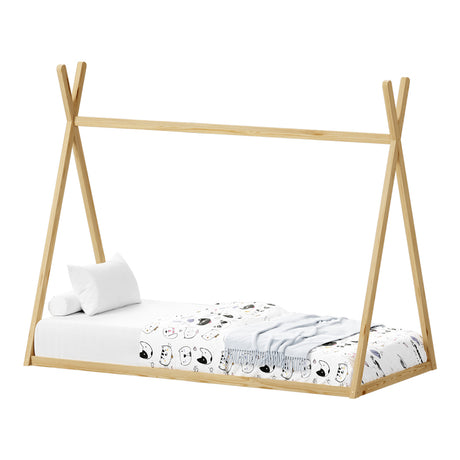Pat copii Callan de stil Montessori cu rame din lemn de pin Natural 90x190cm