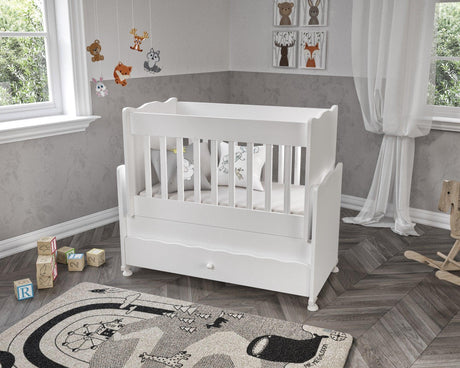Pat de bebeluș Mini Lisa, Alb, 55x91x103 cm