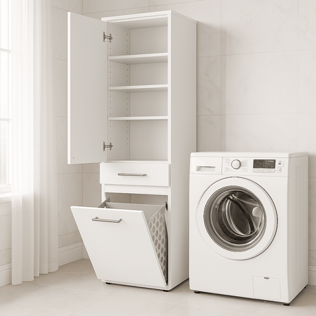 Dulap Baie Adore cu Loc Pentru Masina de Spalat, 3 Rafturi, 2 Usi, Alb, 65 x 182 x 60 cm