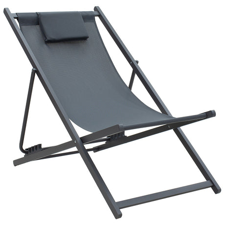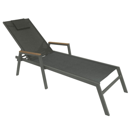 Sezlong cu brate Attain aluminiu si textilene Gri inchis 200x62x35