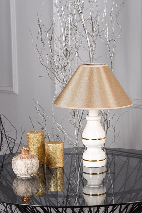Lampa de masa cu functie decorativa Leyda, Stil Modern, Ceramica, Alb-Natural, Dimensiuni 16x24cm.
