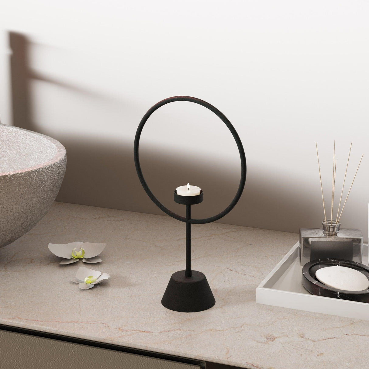 Suport lumânare decorativ Cairos, Negru, 18.5x30x9 cm