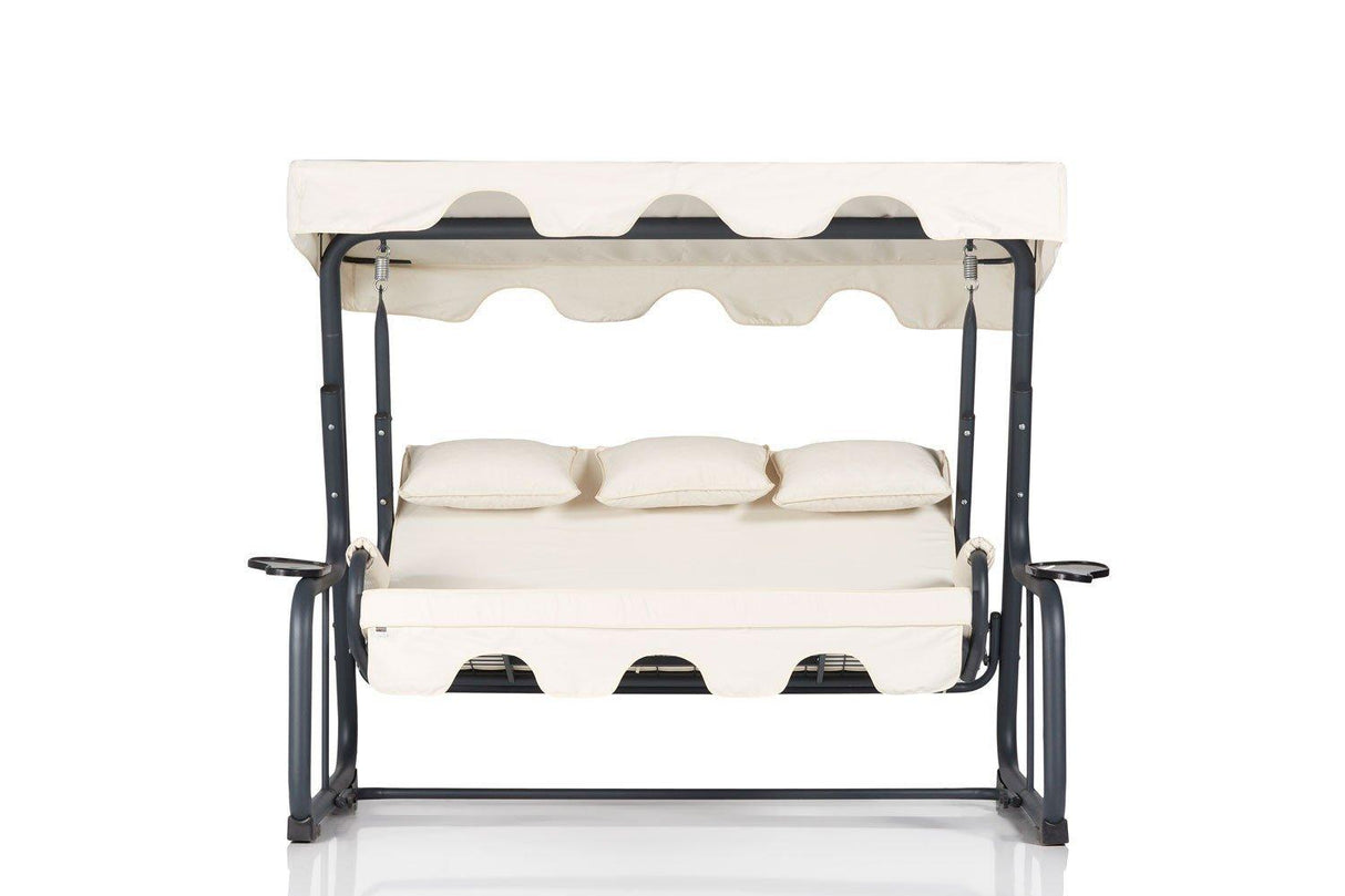 Balansoar de gradina 3 locuri cu suport pahare Meysu, Crem, 200 x 110 x 165 cm