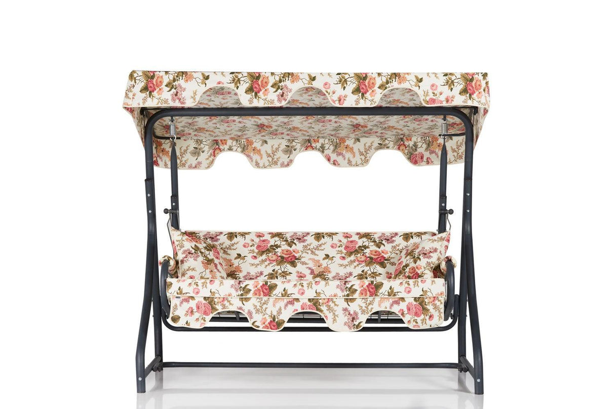 Balansoar de gradina extensibila cu 3 locuri Constanta, Bej - Roz, 200 x 165 x 110 cm
