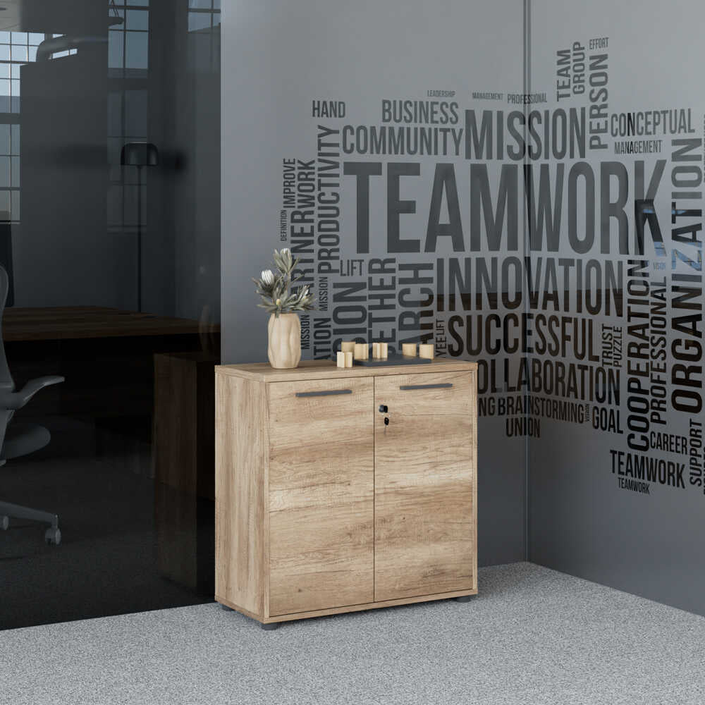 Cu 2 uși cu cheie, 2 rafturi mobile și 1 raft fix, biblioteca Adore New York oferă spațiu ergonomic de depozitare și protecție.