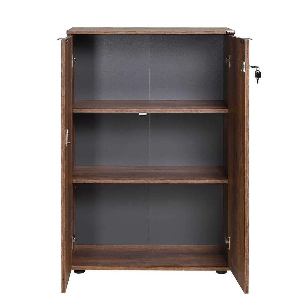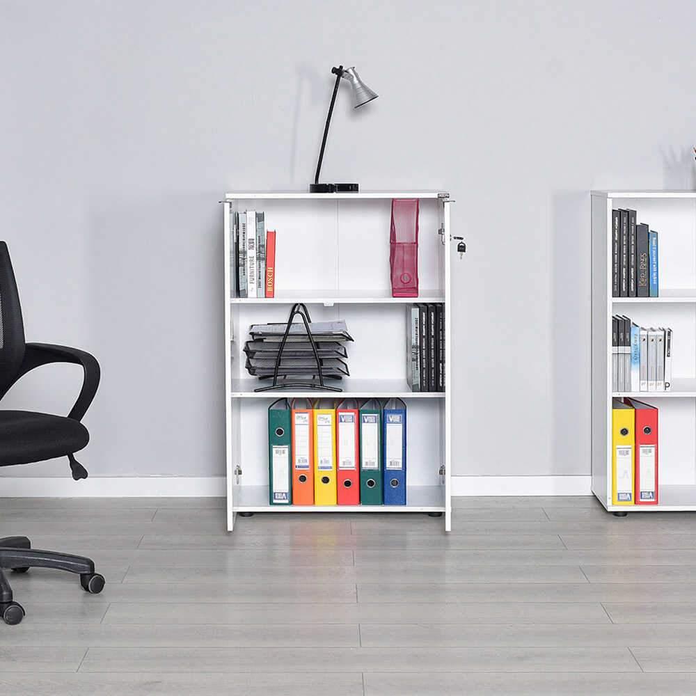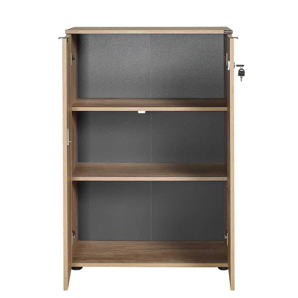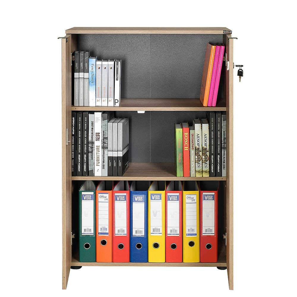 Cu 2 uși cu cheie, 2 rafturi mobile și 1 raft fix, biblioteca Adore Rio oferă spațiu ergonomic de depozitare și protecție.