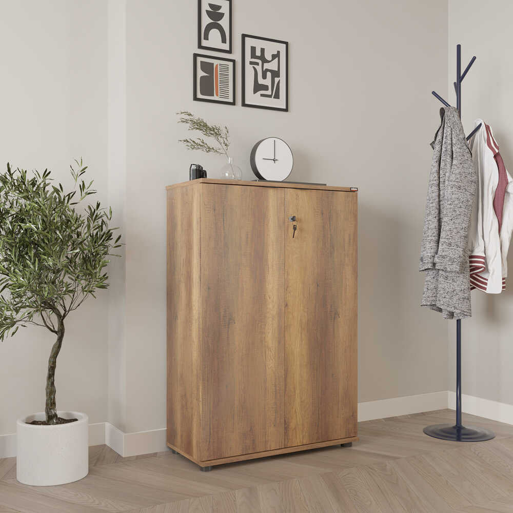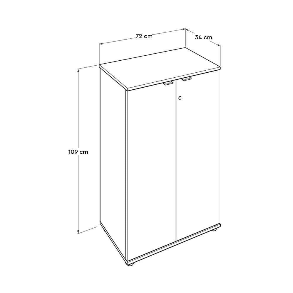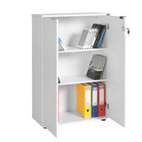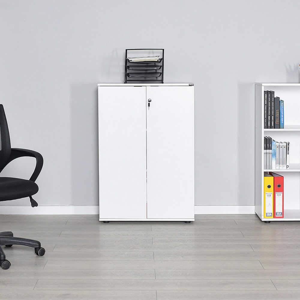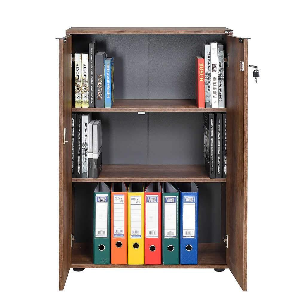 Cu 2 uși cu cheie, 2 rafturi mobile și 1 raft fix, biblioteca Adore Rio oferă spațiu ergonomic de depozitare și protecție.