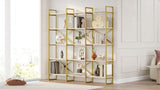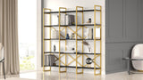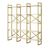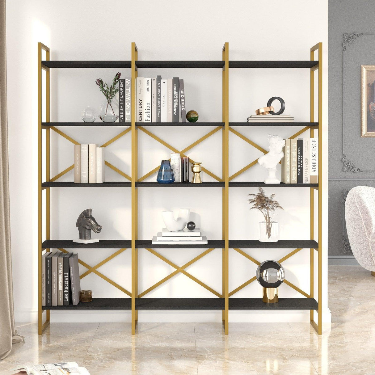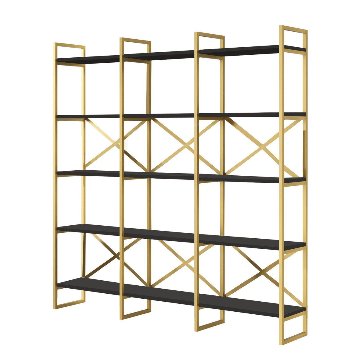 Biblioteca Sierra Lux Large cu 5 rafturi, Aur - Negru - Alb, 170 x 175 x 30 cm