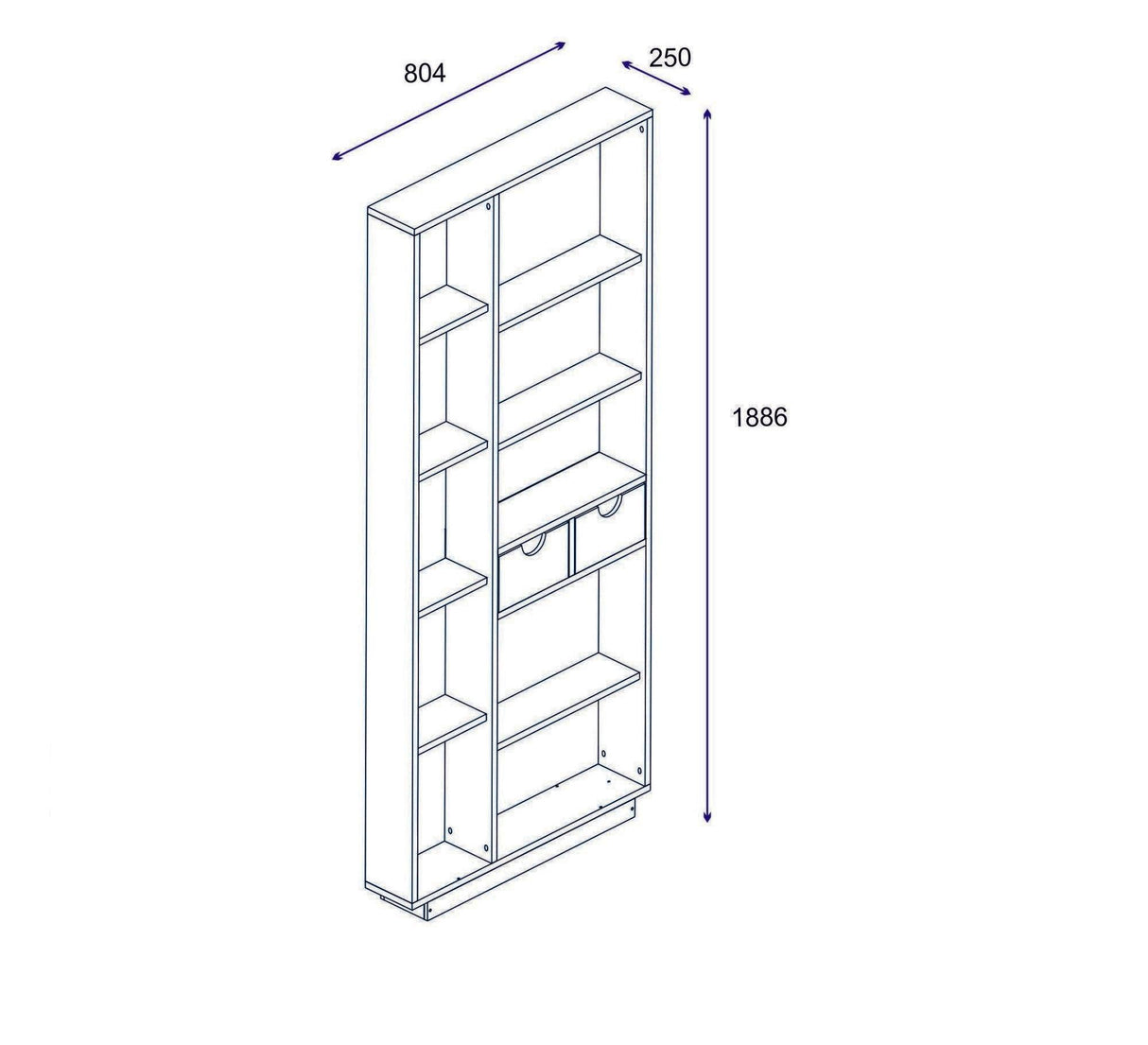 Biblioteca Socrates 10 Rafturi si 2 Usi , Alb, 80 x 189 x 25 cm