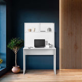 Birou Adore White cu biblioteca, Alb, 90x148x52 cm