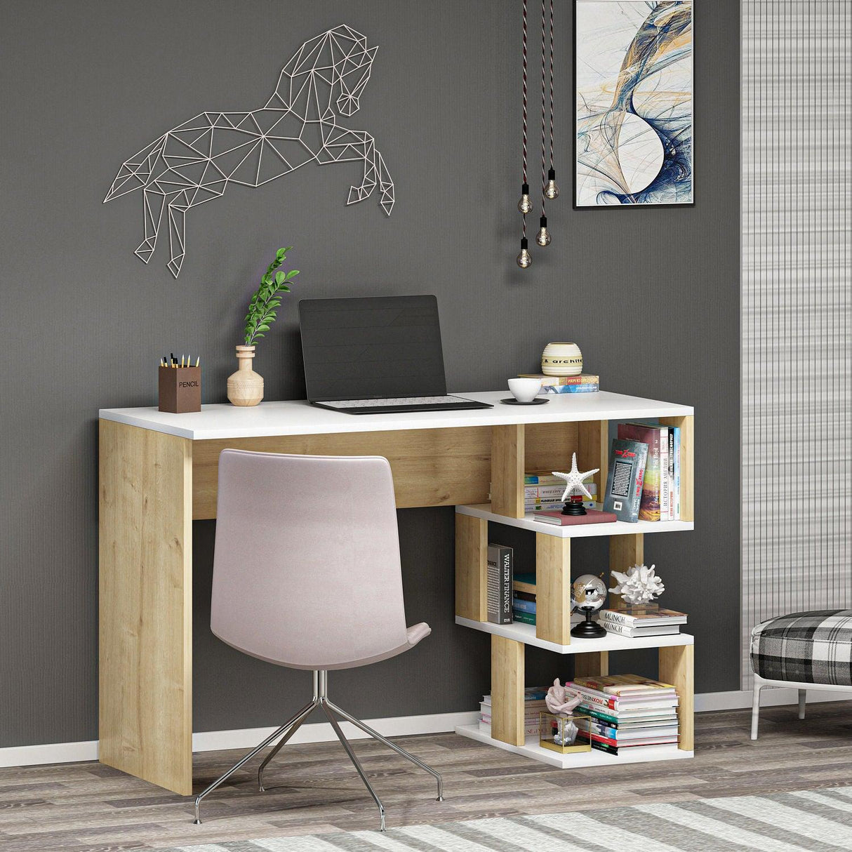 Birou Dardanos cu Rafturi, Alb, 110 x 74 x 50 cm