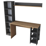 Birou cu Biblioteca Nic cu 9 Rafturi, Gri - Nuc, 160 X 162 X 45 Cm