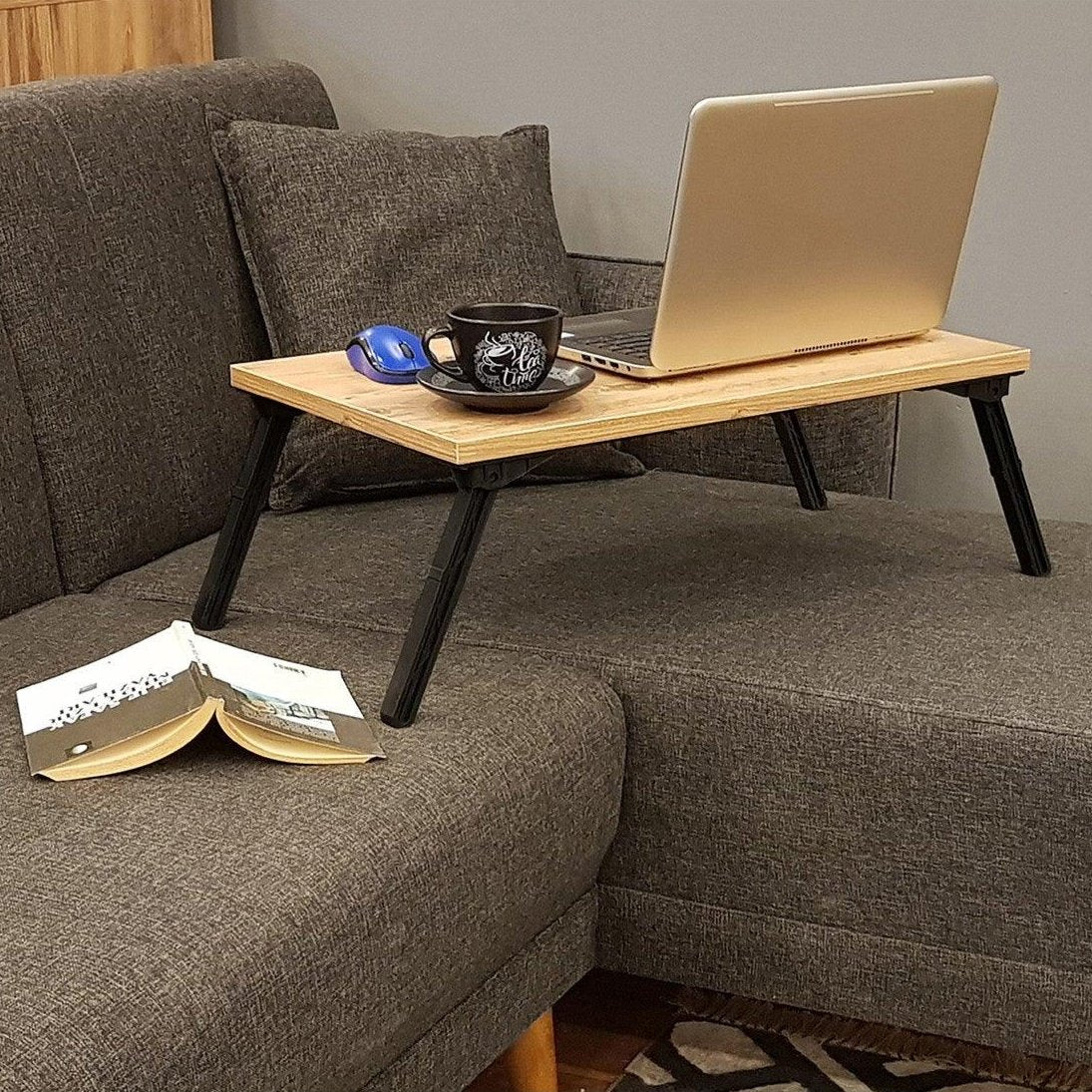 Birou Laptop Pliabil Atlantis, Stejar, 60 x 25 x 35 cm