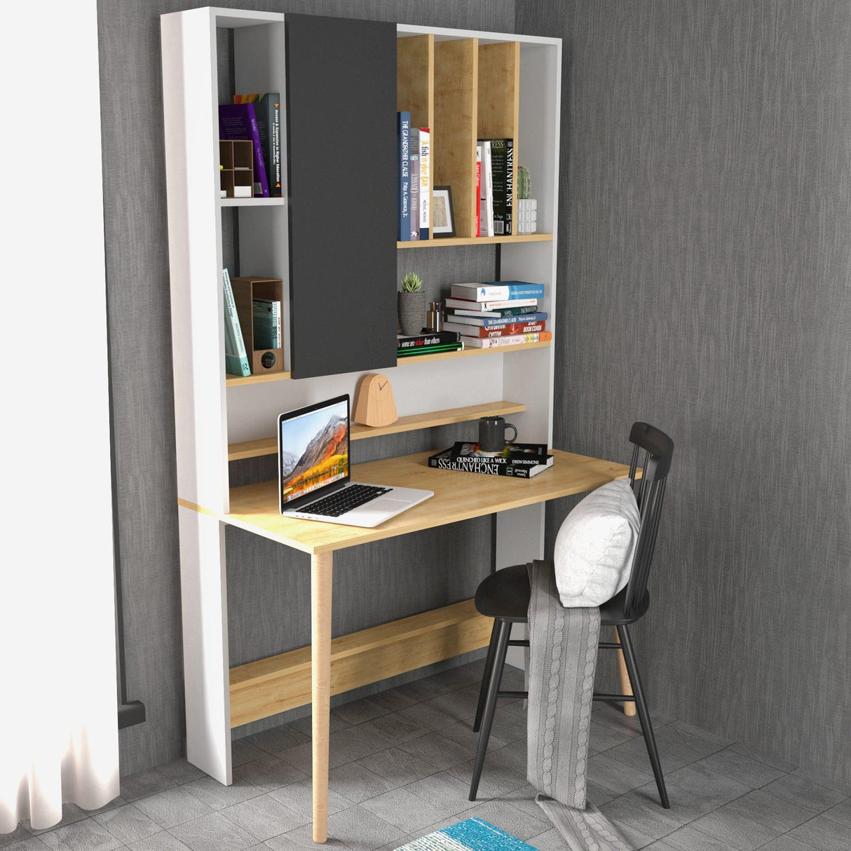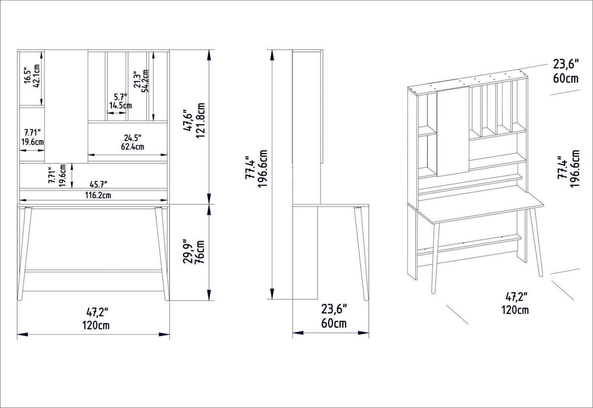 Birou Wood cu biblioteca, 120 x 200 x 60 cm