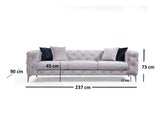 Canapea Fixa cu 3 Locuri Favalli, Chester, Gri deschis, 230 x 90 x 73 cm
