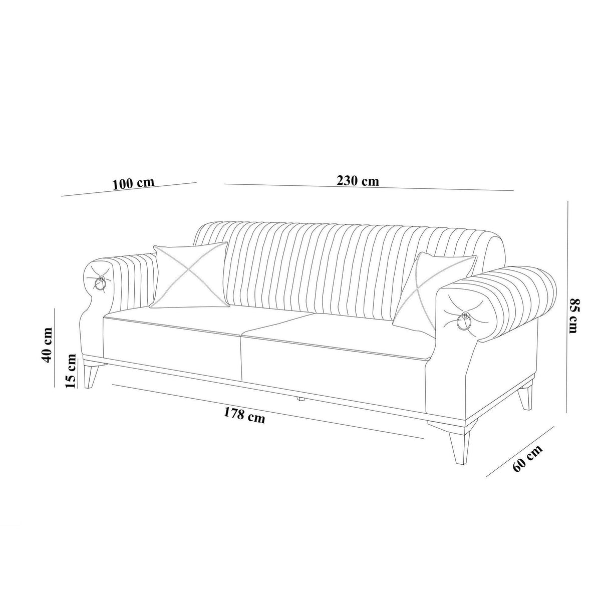 - Dimensiune: 230 x 100 x 85 cm