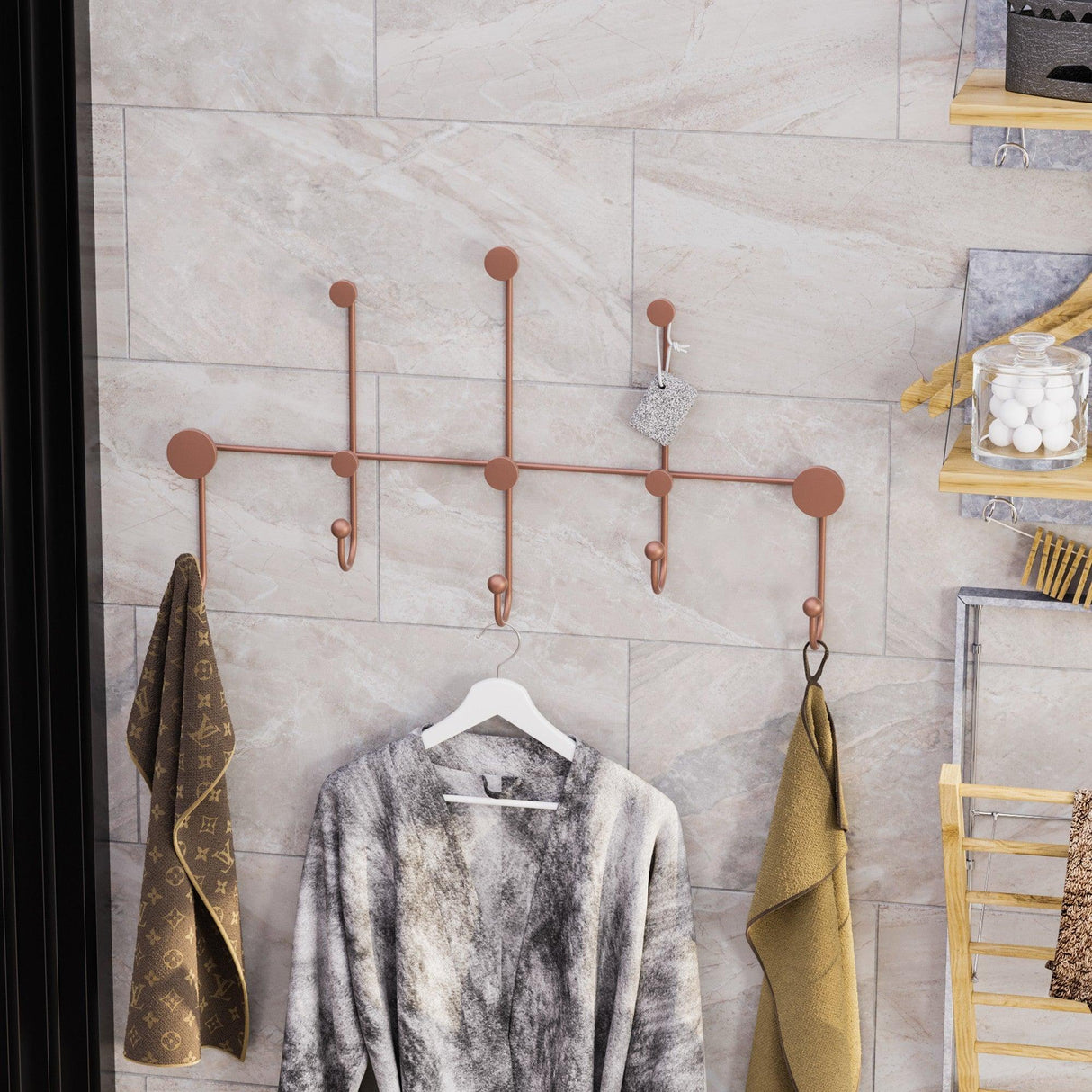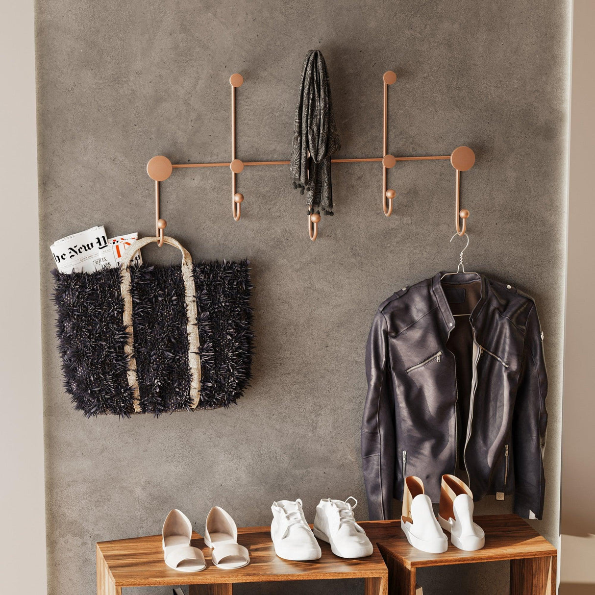 Cuier de hol metalic Metal Wall Hook Antonio 4, Cupru, 80x45x10 cm