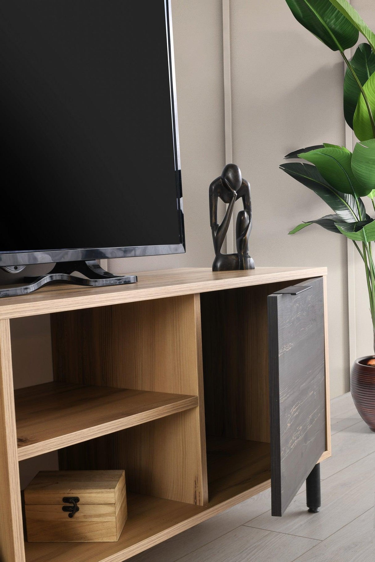 Adaugă funcționalitate și eleganță spațiului tău de divertisment cu această comodă TV rafinată și practică. Cu un design modern și finisaje de calitate superioară, această comodă este alegerea perfectă pentru a găzdui televizorul tău și a-ți organiza echipamentele multimedia. Cu spații de depozitare generoase, această comodă oferă loc suficient pentru a păstra DVD-uri, telecomenzi și alte accesorii. Realizată din materiale durabile și cu o construcție solidă, această comodă TV este atât elegantă, cât și practică. Transformă zona de divertisment într-un spațiu organizat și stilat cu ajutorul acestei comode TV remarcabile!