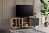Comoda Tv cu rafturi Gordes - Dark Brown, Stejar - Maro , 140x55x40 cm