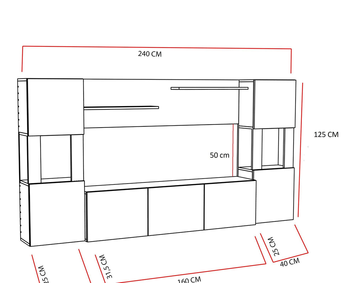 - Dimensiune suport TV: Latime: 160 cm Inaltime: 125 cm Adâncime: 31,5 cm