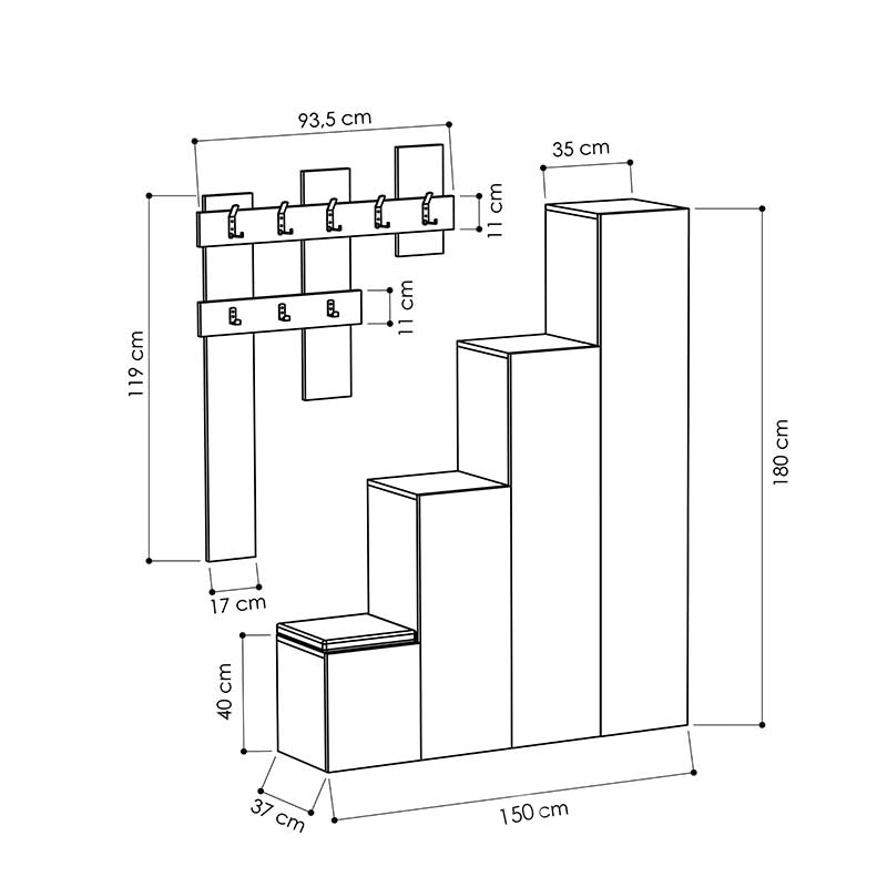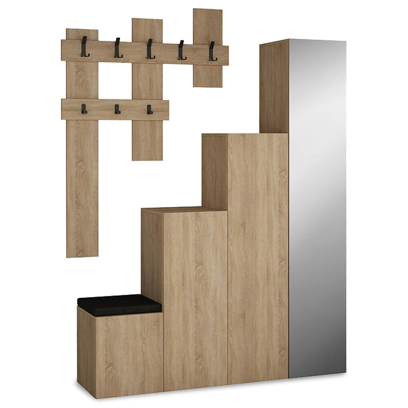 Cuierul cu pantofar este o combinație perfectă de funcționalitate și estetică. Cu un design clasic și modern, acest cuier în culoare Naturală, echipat cu oglindă, este ideal pentru un spațiu luxos. Realizat din pal melaminat de înaltă calitate, acest cuier cu pantofar include un suport pentru haine și o oglindă. Dimensiunile sale sunt: Lungime: 150cm, Lățime: 37cm, Înălțime: 180cm. Ușor de asamblat, acest produs va aduce un plus de eleganță și funcționalitate în casa ta, fiind ideal pentru păstrarea a 10 perechi de pantofi.
