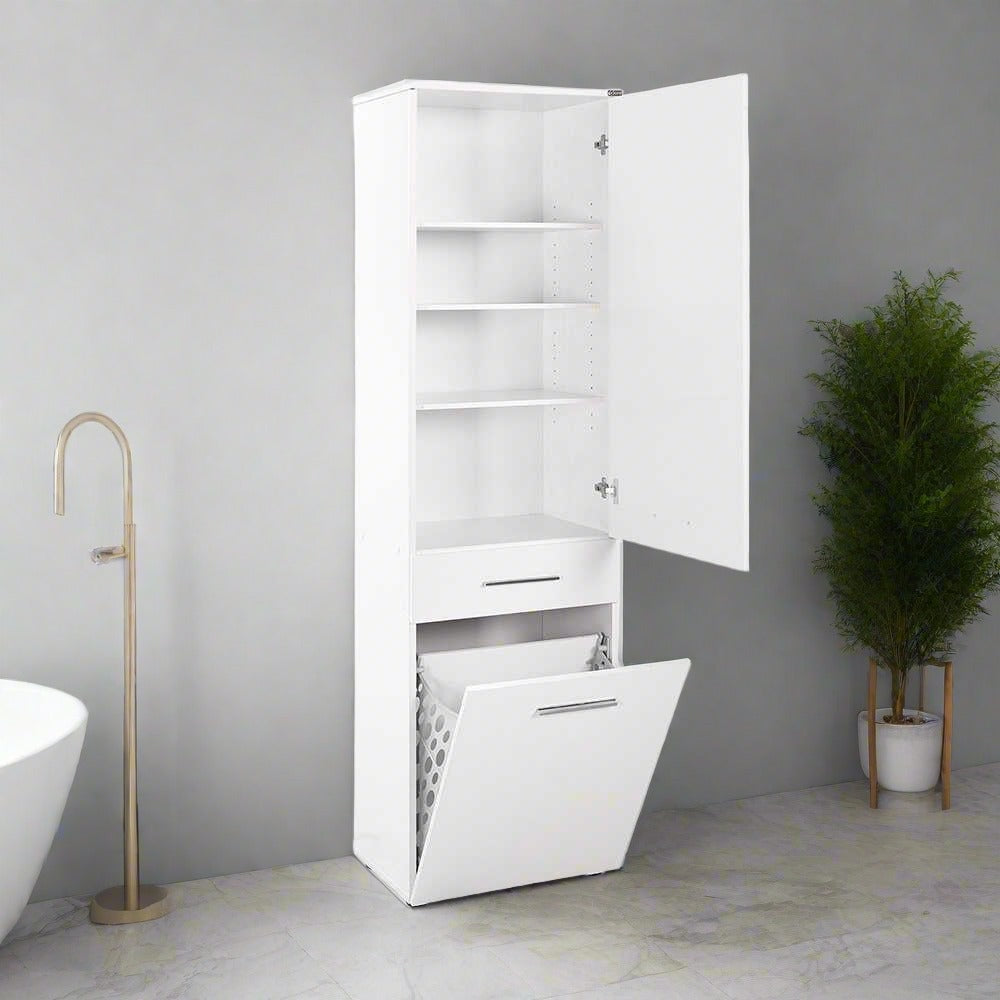 Dulap Baie cu cos de rufe Adore Diamond Maxi, Usa reversibila, Alb Lucios, 52x187x38 cm