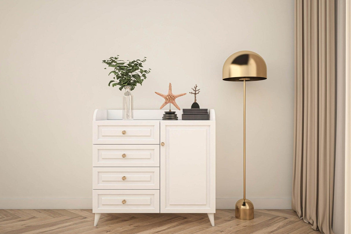 Comoda Tango cu 4 sertar si Usa, Alb, 90 x 88 x 41 cm
