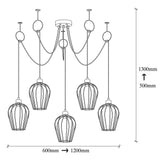 Candelabrul industrial nostalgic are un diametru de 120 cm și o înălțime de 130 cm, ceea ce îl face să aibă dimensiunea perfectă pentru a crea un punct focal captivant în orice cameră. Înălțimea reglabilă vă permite să personalizați candelabrul pentru a se potrivi perfect spațiului dvs., în timp ce cele 5 prize e27 asigură o iluminare amplă pentru a crea o atmosferă caldă și primitoare.