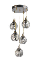 Confecționat cu un corp metalic, acest candelabru emană un sentiment de rafinament și durabilitate. Conceptul său de culoare solidă, cu un amestec armonios de auriu și negru, adaugă o notă de opulență în mediul dvs. înconjurător. Indiferent dacă aveți o temă tradițională, orientală sau de sud-vest, acest candelabru completează fără efort orice stil de decor, ceea ce îl face o alegere versatilă pentru casa dvs.