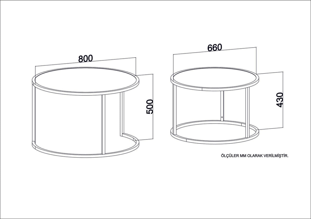 Masa de cuibarit (2 bucati) Tambur - Gold, Aur, 50x80x80 cm