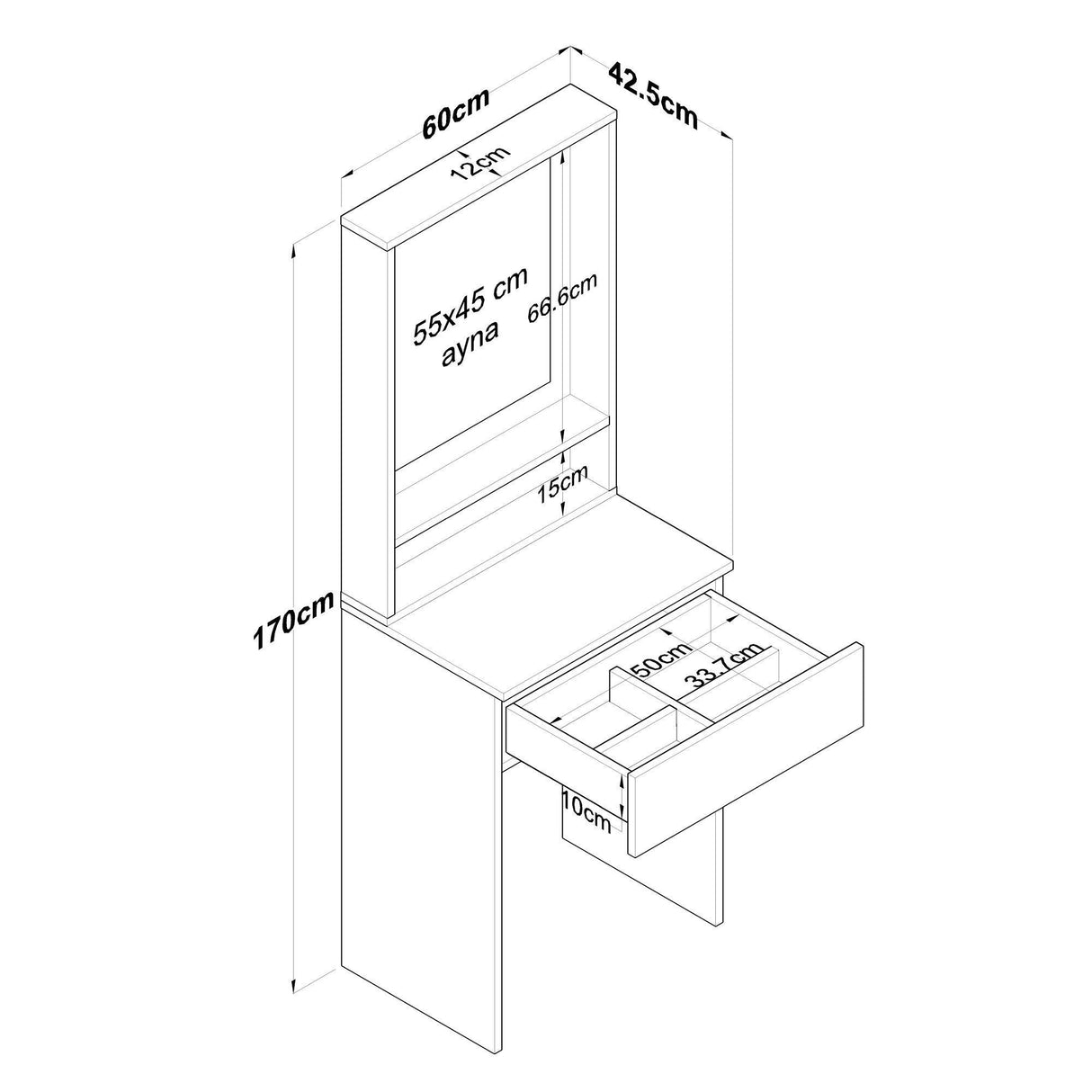 Masa De Machiaj de Lux Orte cu Sertar si Oglinda, Nuc, 60 X 170 X 42 Cm