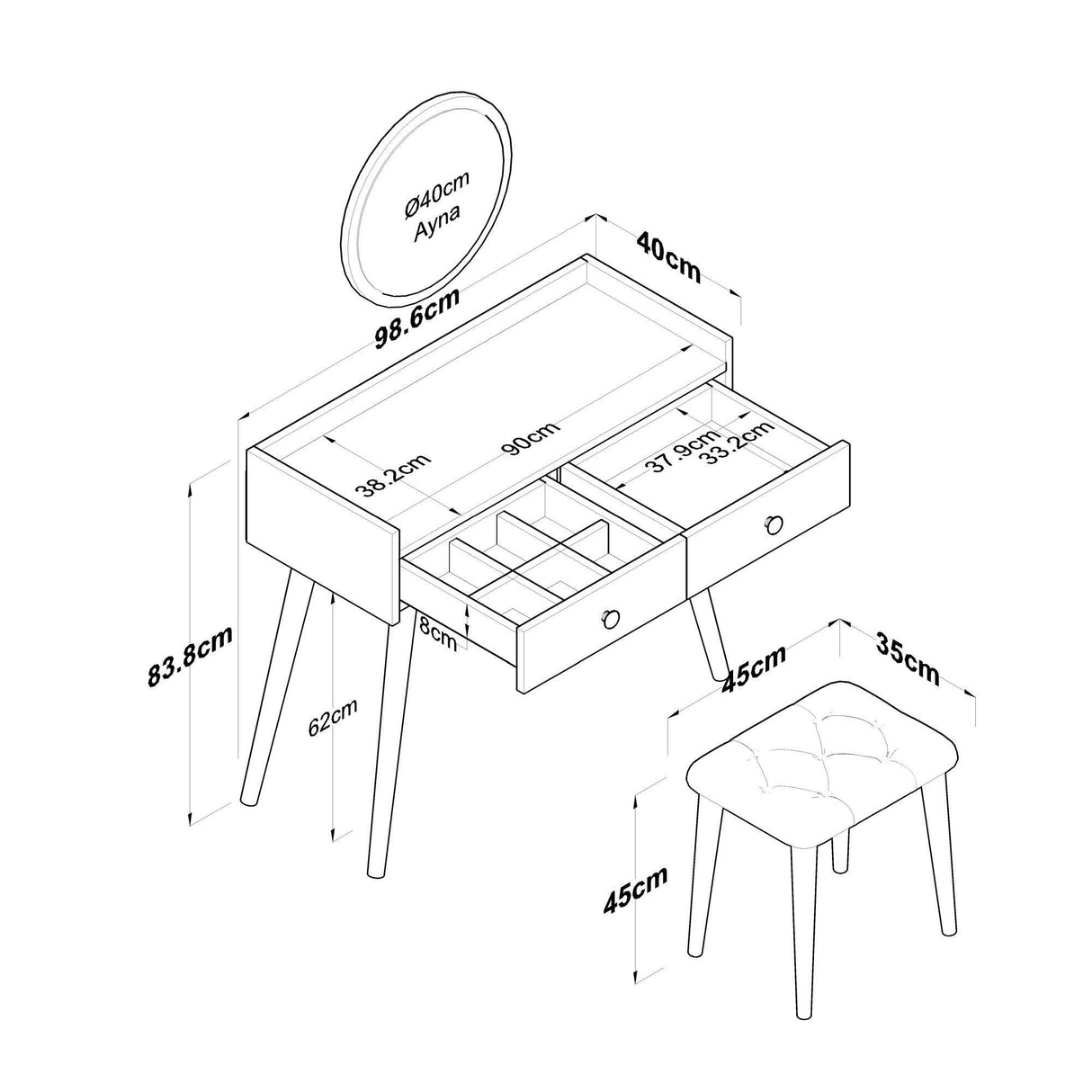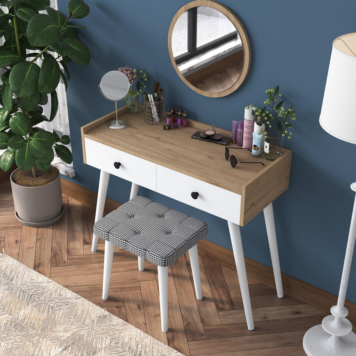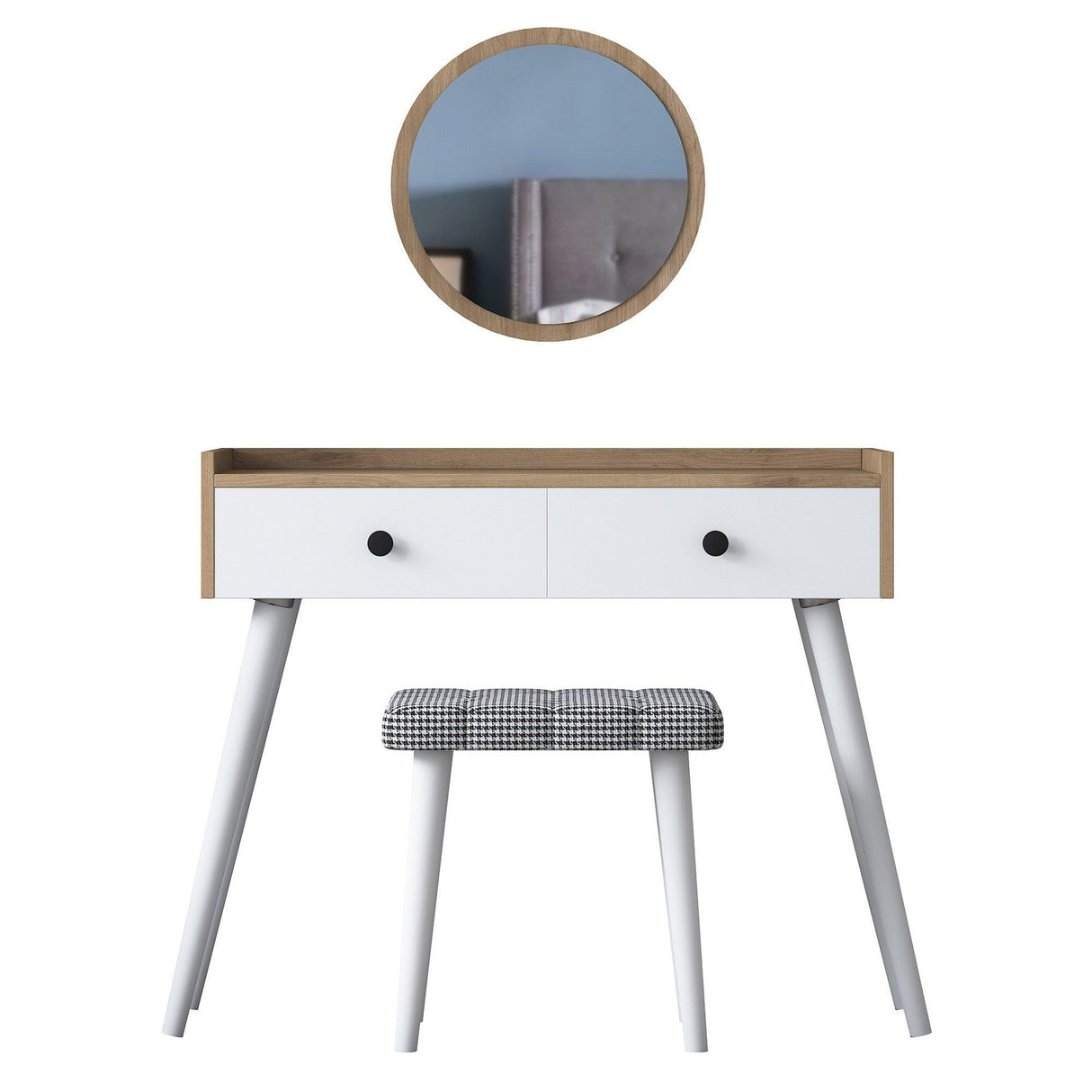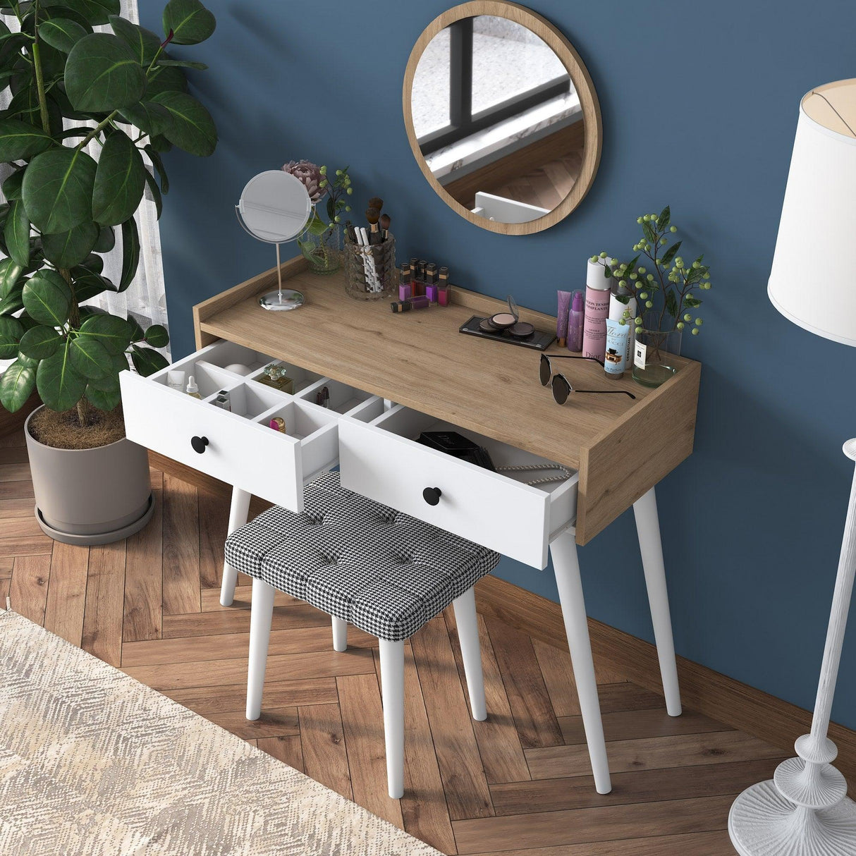 Masa De Machiaj Lux Manolia cu 2 Sertare si Oglinda, Alb - Nuc, 99 X 83 X 40 Cm