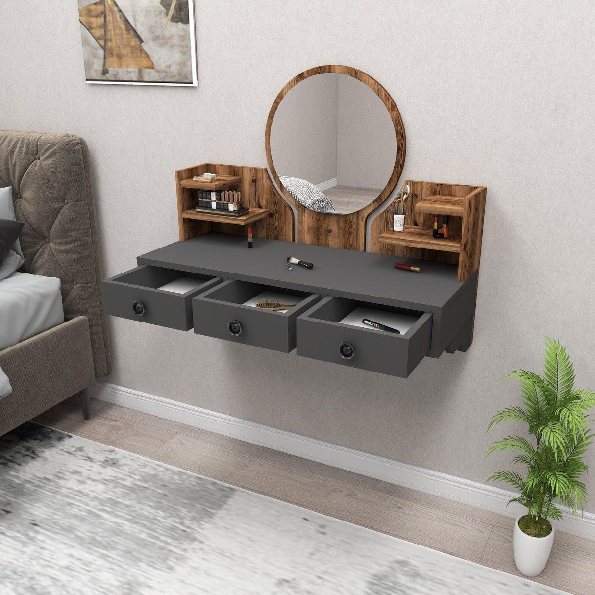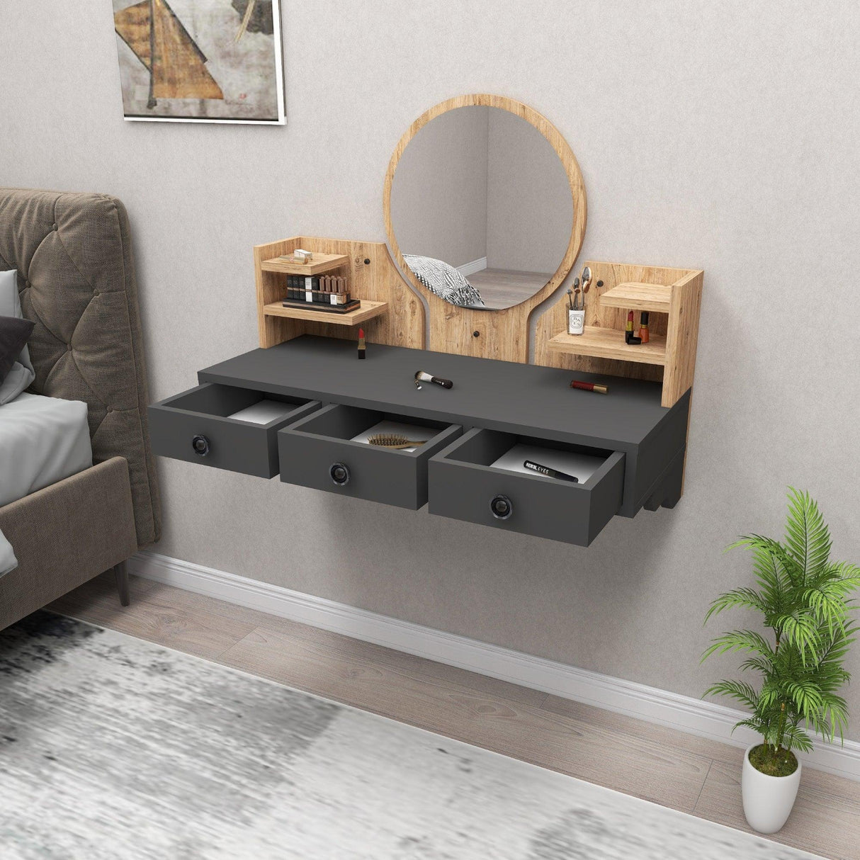 Transformă-ți rutina de machiaj într-o experiență plăcută și organizată cu această masă de machiaj elegantă și funcțională. Cu un design modern și finisaje de calitate, această masă adaugă un plus de stil și rafinament spațiului tău de înfrumusețare. Construită pentru confort și eficiență, această masă de machiaj este alegerea perfectă pentru fiecare pasionată de frumusețe.