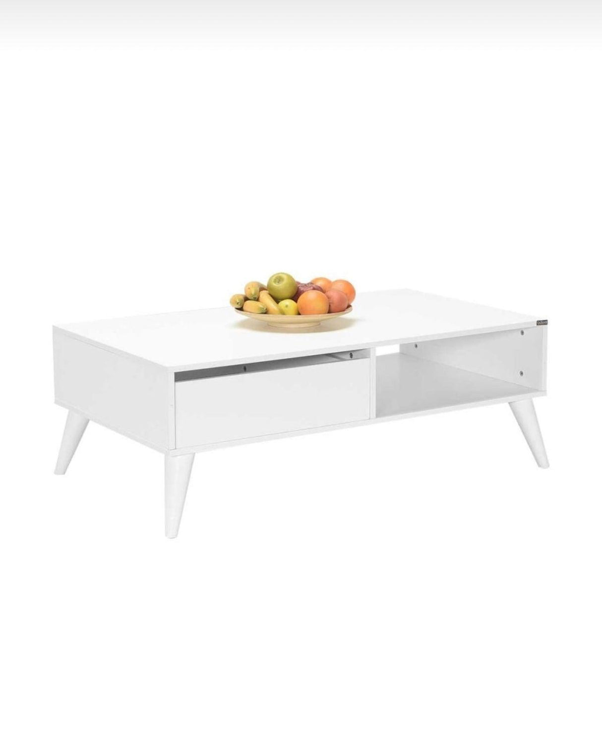 Masuta Cafea cu sertar Adore Living, Alb - Lemn Natural, 110 x 42 x 65 Cm