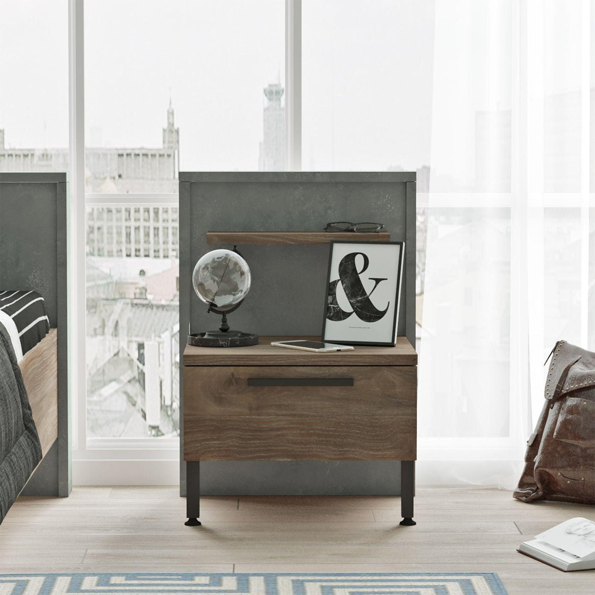Noptiera Airbnb cu raft si sertar, Maro, 44 x 59 x 45 cm