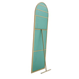 Transformați-vă spațiul de locuit cu rafinata oglindă cheval. Această piesă uimitoare combină designul modern cu o notă de noutate, ceea ce o face să fie un accesoriu perfect pentru orice cameră. Rama sa elegantă, realizată din metal 100%, este finisată cu o vopsea electrostatică uscată la cuptor, asigurând durabilitate și o culoare aurie mată impecabilă.